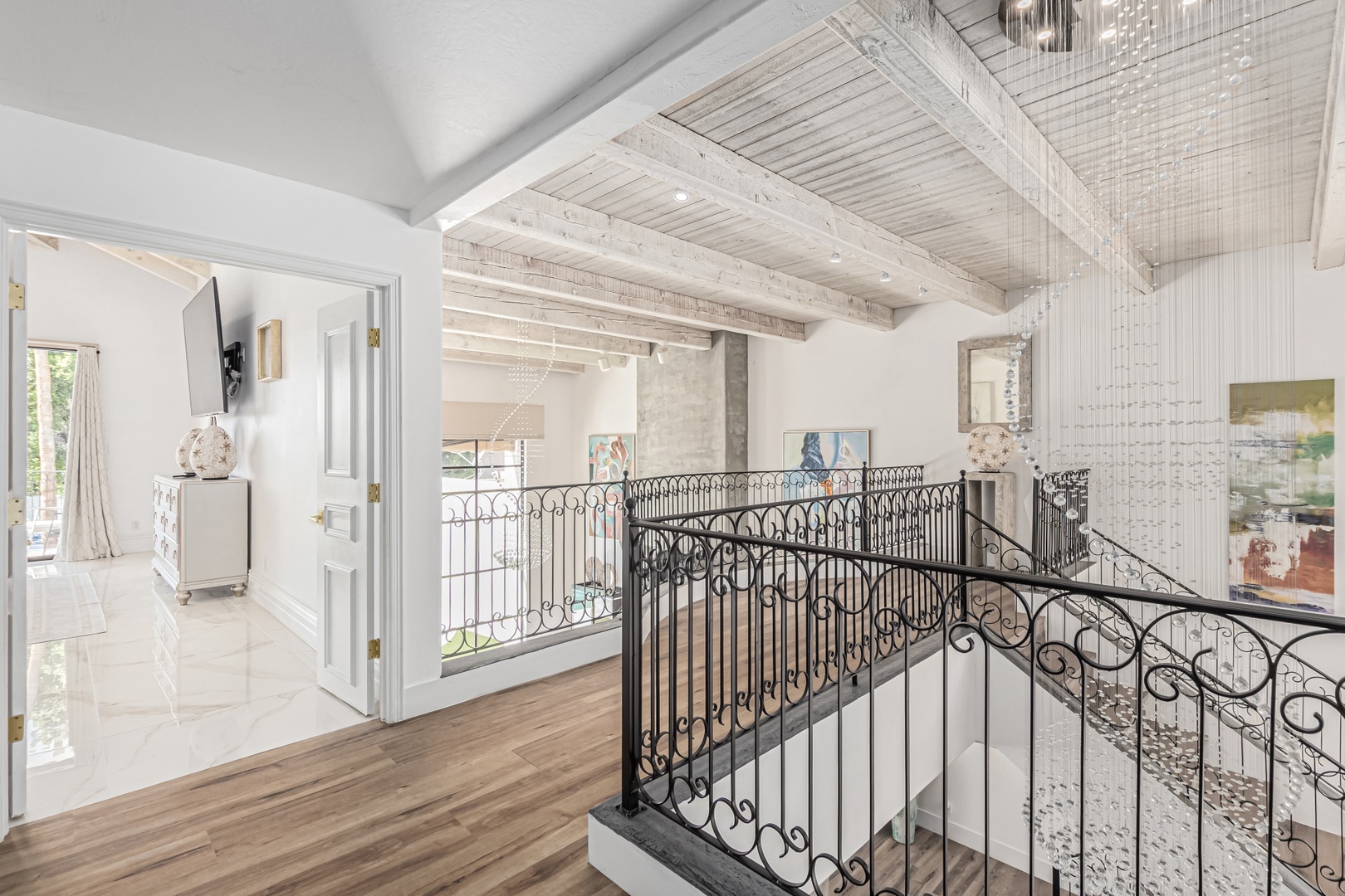 The primary suite is a private escape with its own balcony and spa-inspired bath, while guest suites provide comfort and flexibility for family or visitors. A finished two-car garage with sleek epoxy flooring adds a polished touch.